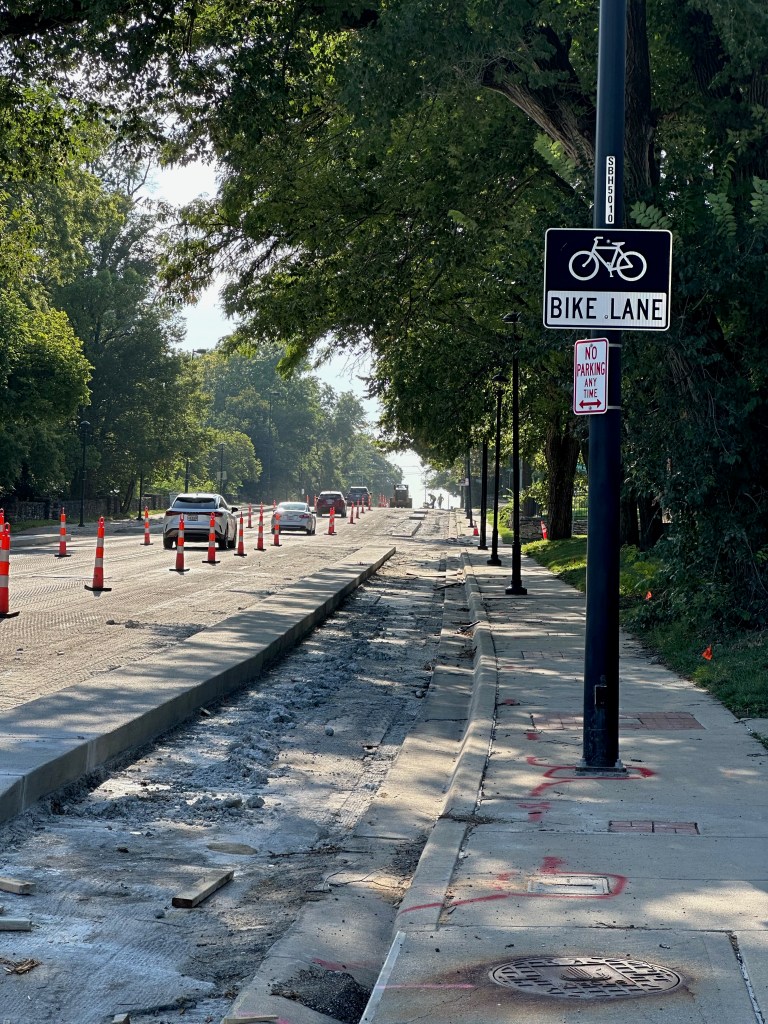 The urban arterial freeway known as Emanuel Cleaver II Boulevard is getting two of the best protected cycling lanes in the city between Troost Ave and Oak Street, eliminating the gap between the Trolley Track Trail and the Gillham protected lanes.